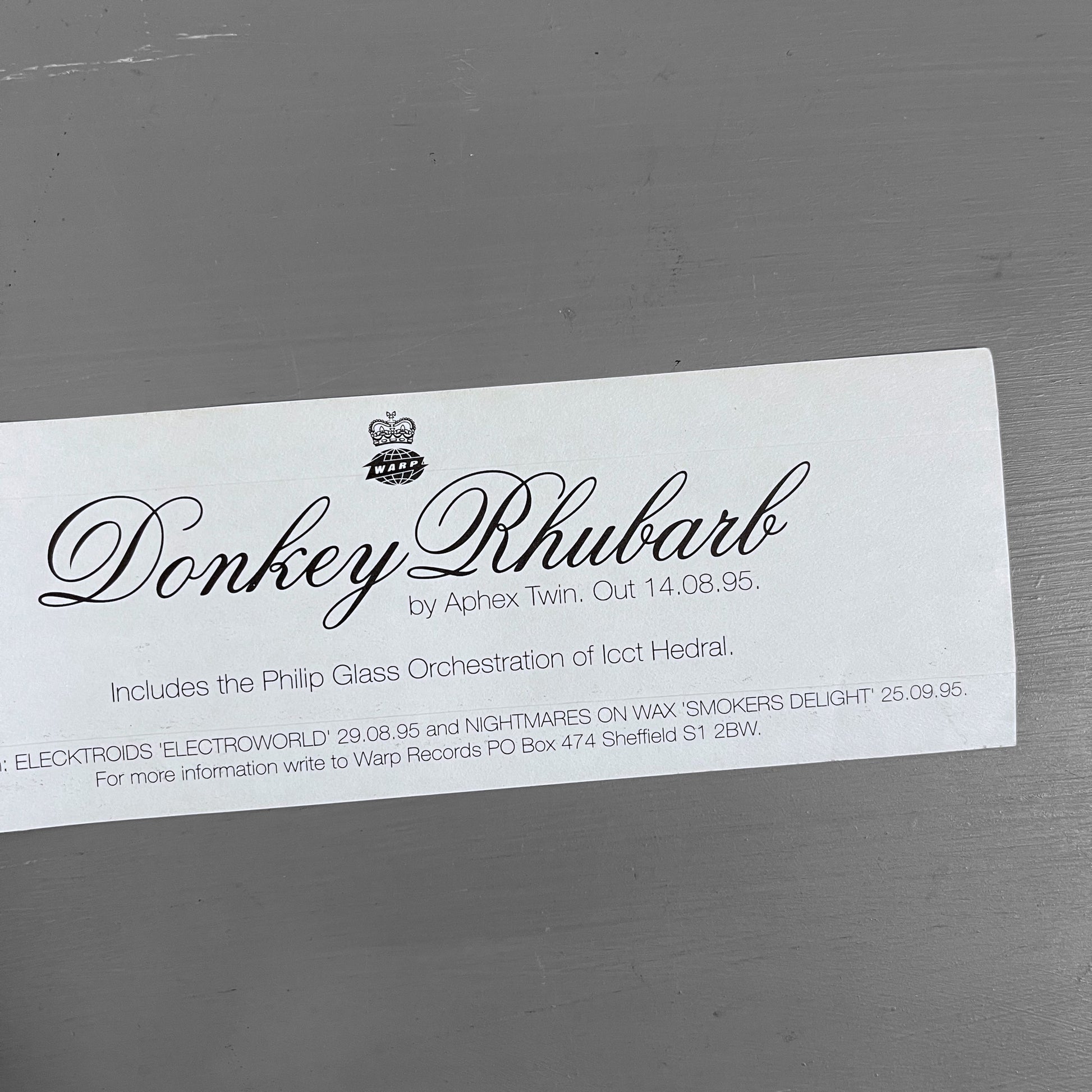 Original promo sticker from warp records & aphex twin single ‘donkey rhubarb’