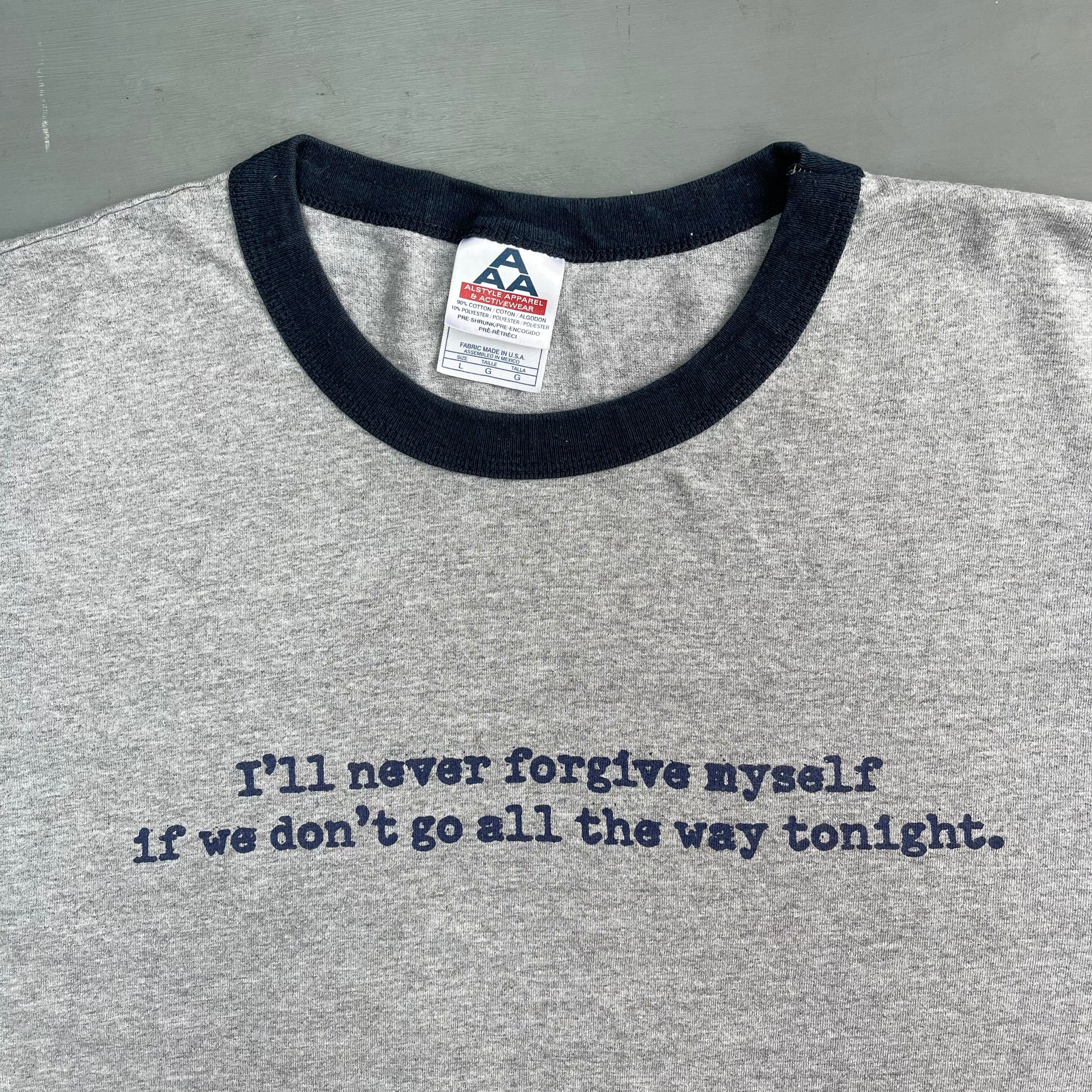 2000s I’ll never forgive myself if we don’t go all the way tonight slogan T-Shirt (L)