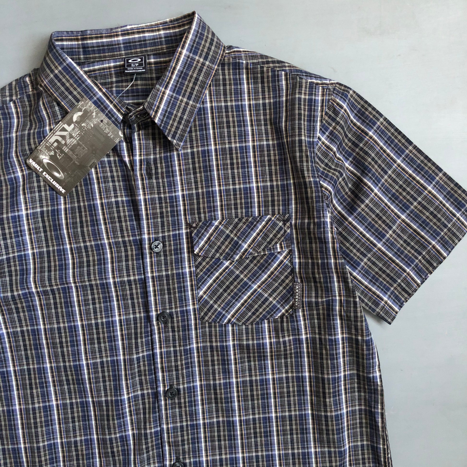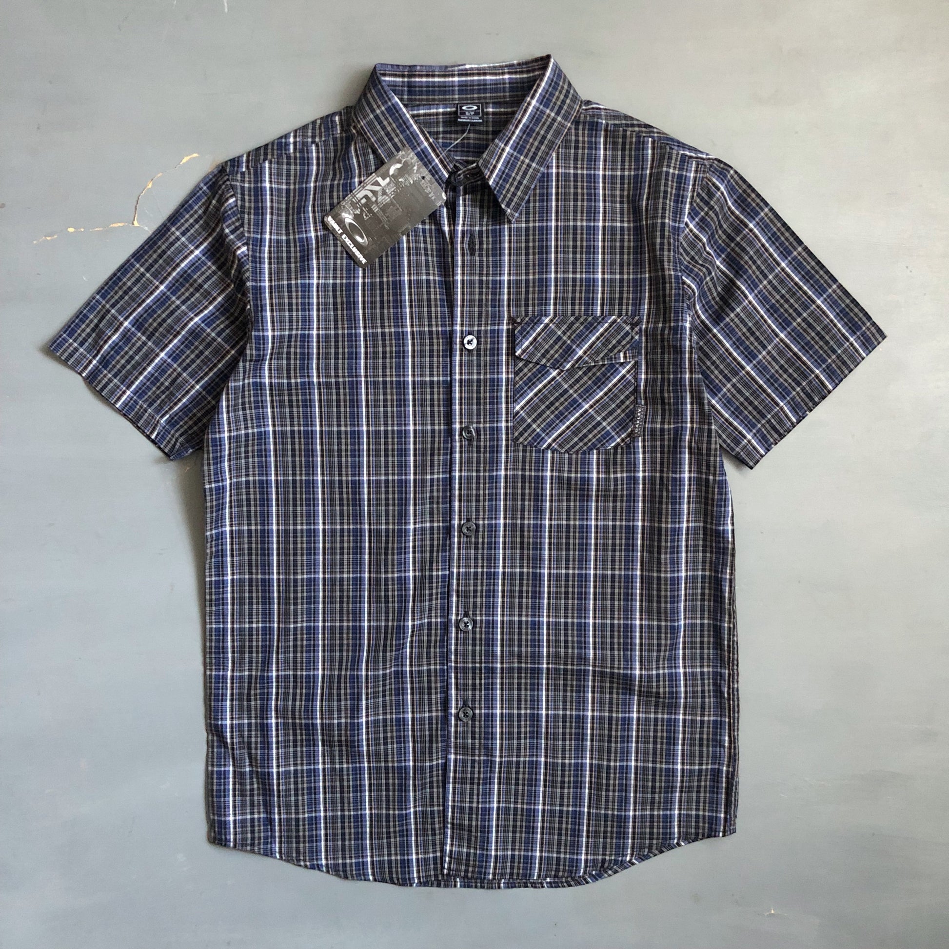 2000s short sleeve Oakley checked shirt (M)