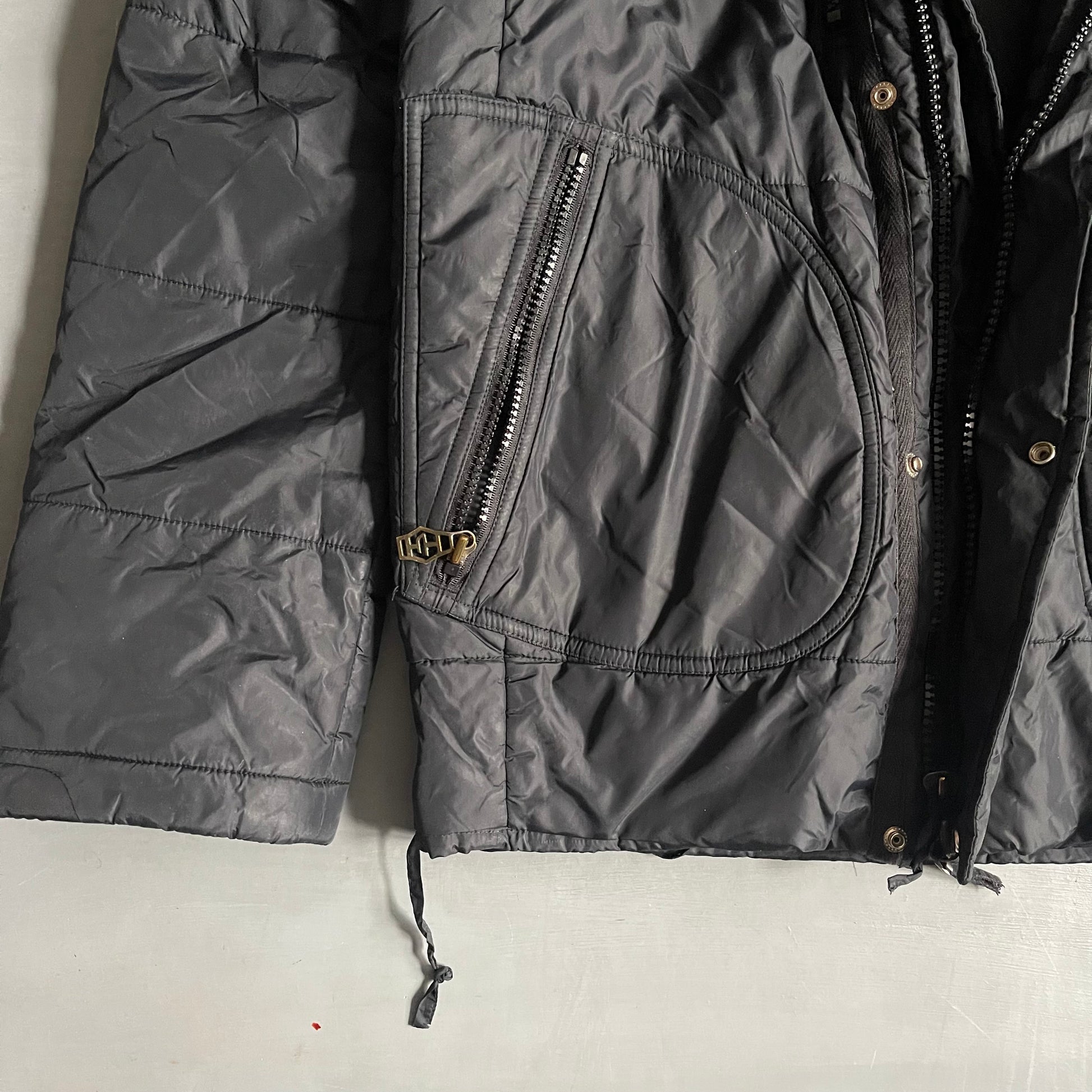 in good vintage condition fully functional. Comes with detachable hood, large chunky storage pockets and toggles to tighten for required fit