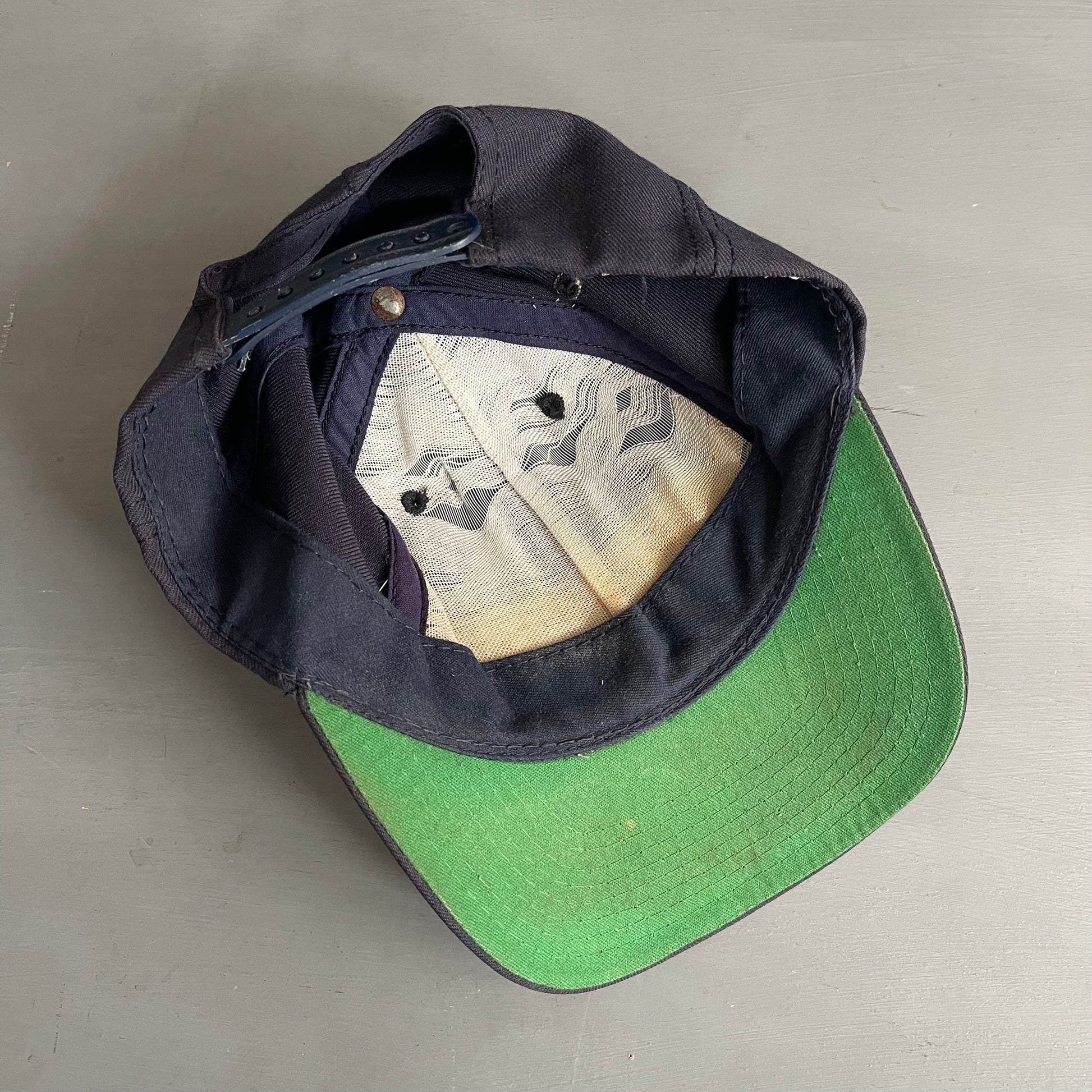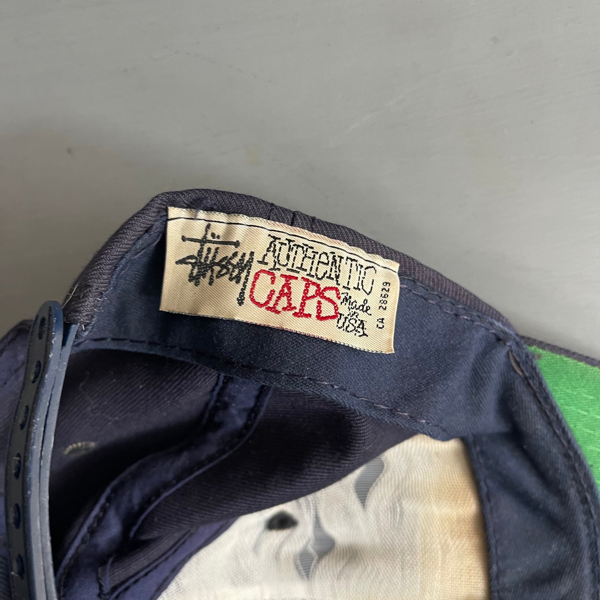 Original vintage stussy cap with the green under lid. Made in USA. Fits one size with adjustable snap back - in good condition with a minor sign of wear and some fading.