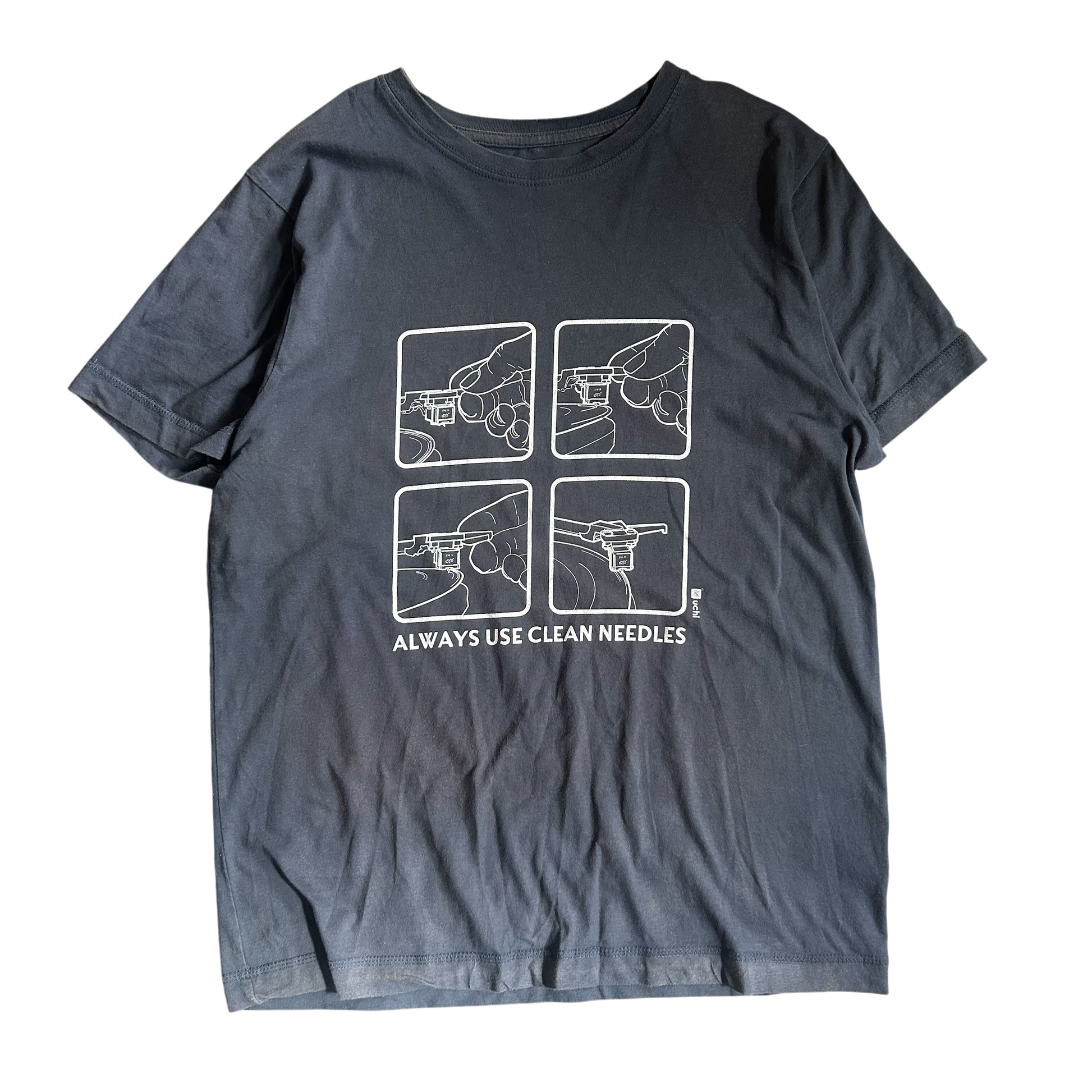 2000s Always use clean needles DJ turntable T-shirt (M)